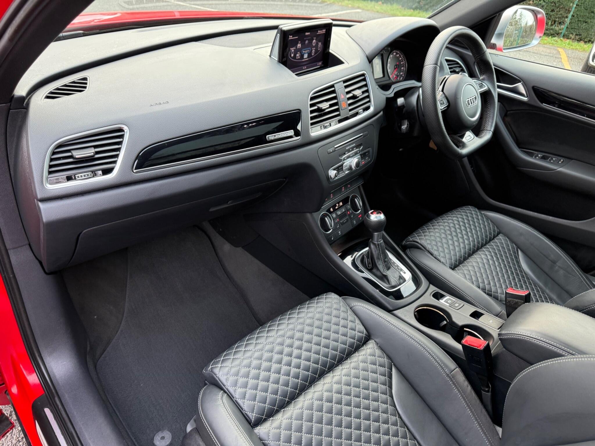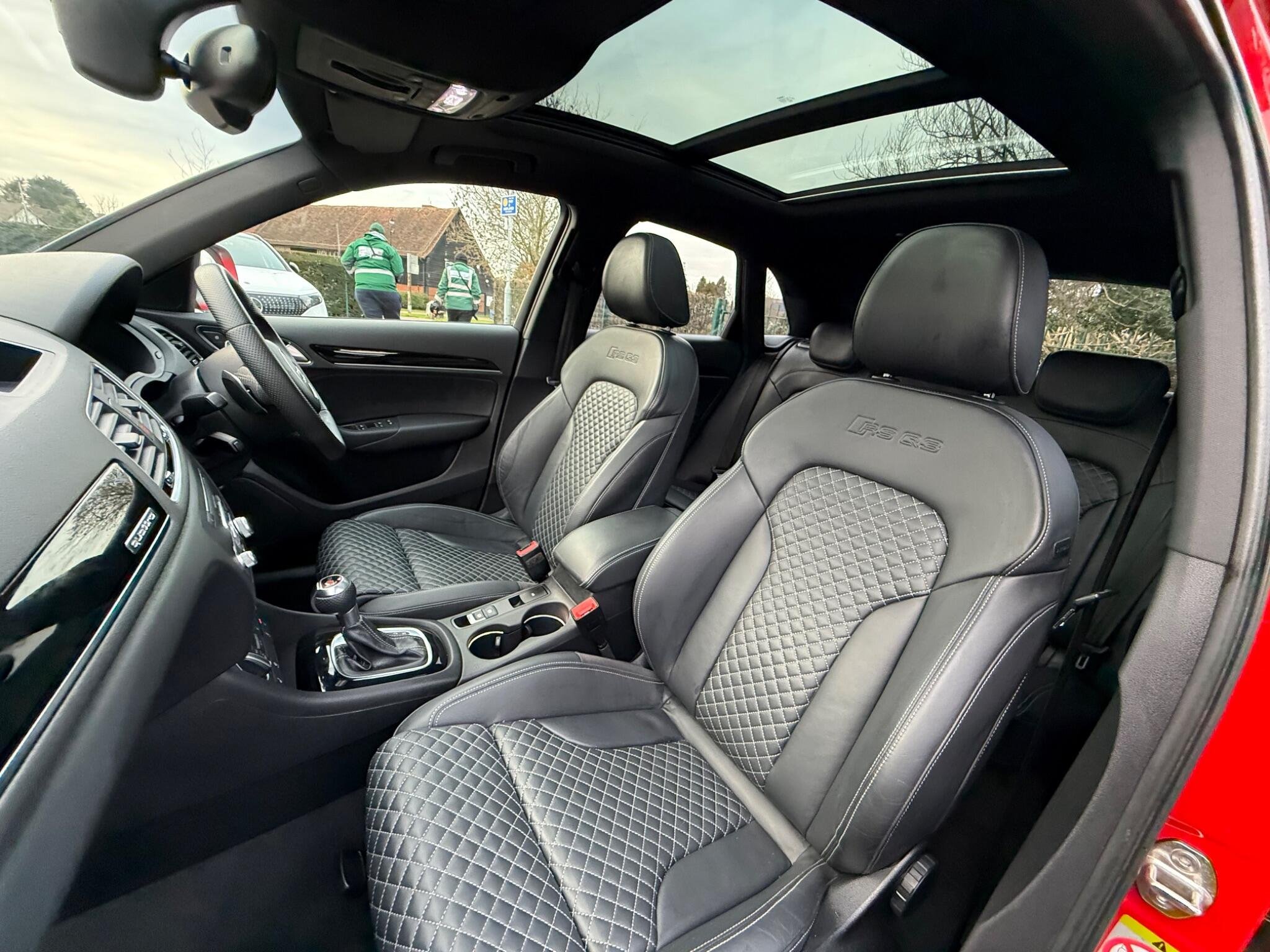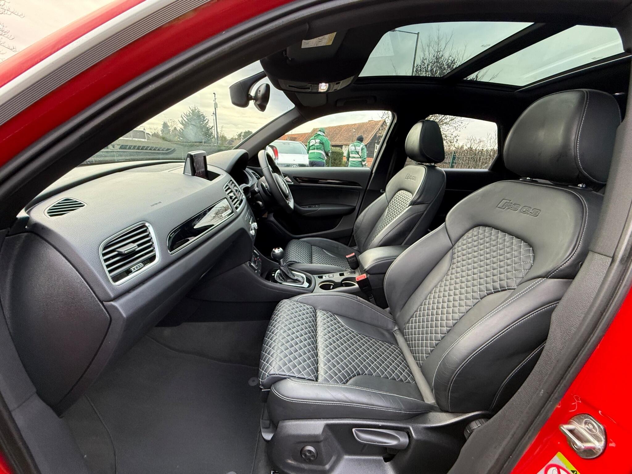- Fine Nappa Leather Sports Seats with Diamond Pattern Stitching - Black/Rock Grey Stitching RS Q3 Logo